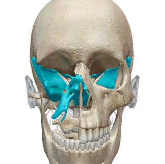 Sphenoid bone (blue) in the skull with some of the right hand facial bones removed